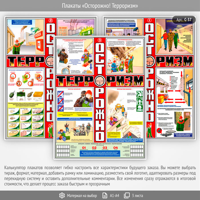 Плакаты «Осторожно! Терроризм» (С-37, 3 листа) в Ижевске купить