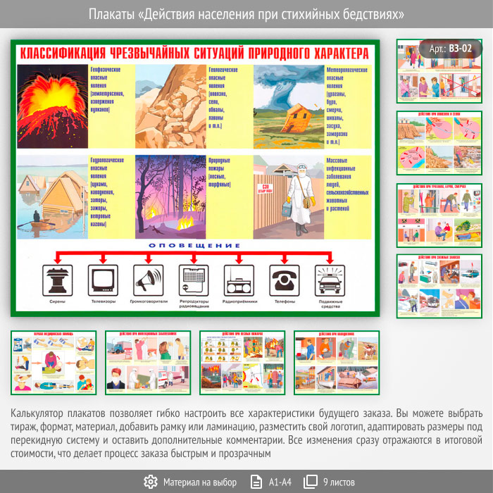 Плакаты «Действия населения при стихийных бедствиях» (ВЗ-02, 9 листов) в Ижевске купить