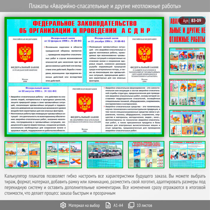 Плакаты «Аварийно-спасательные и другие неотложные работы» (ВЗ-09, 9 листов) в Ижевске купить