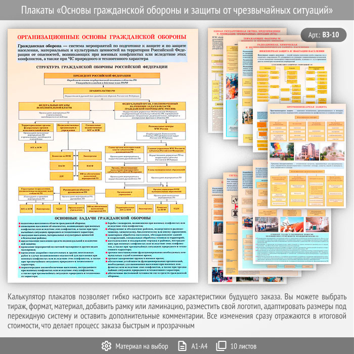 Плакаты «Основы гражданской обороны и защиты от чрезвычайных ситуаций» (ВЗ-10, 10 листов) в Ижевске купить