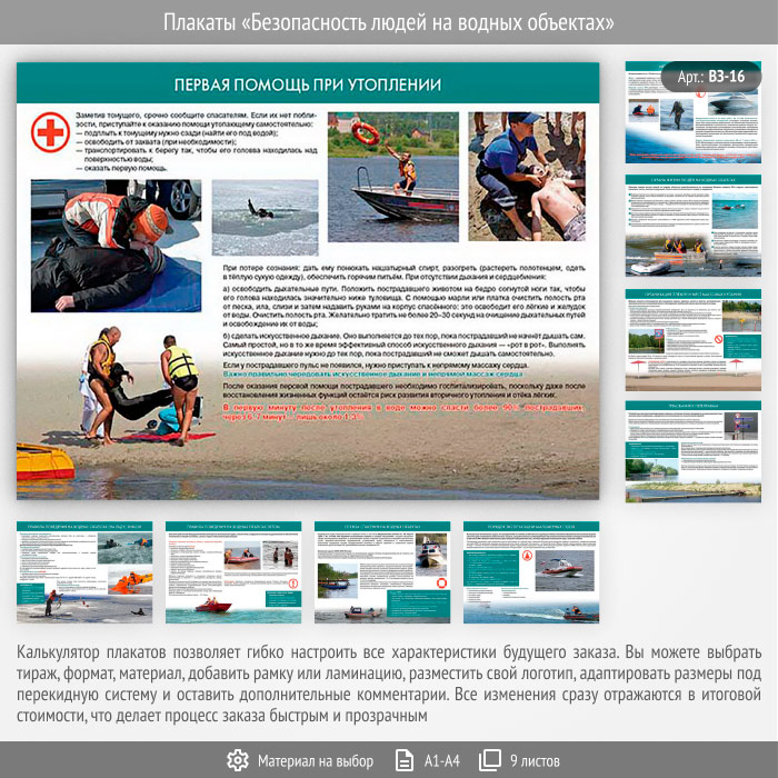 Плакаты «Безопасность людей на водных объектах» (ВЗ-16, 9 листов) в Ижевске купить