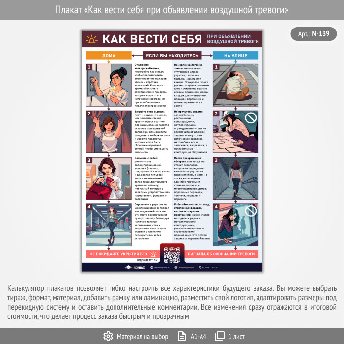 Плакат «Как вести себя при объявлении воздушной тревоги» с QR (М-139, 1 лист) в Ижевске купить