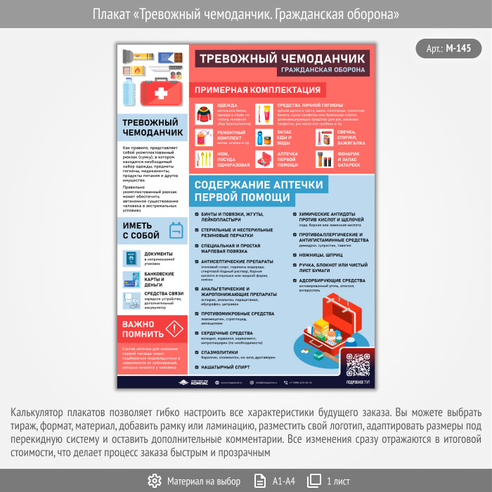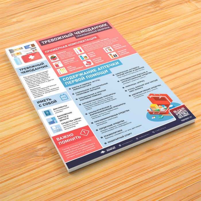 Плакат «Тревожный чемоданчик. Гражданская оборона» с QR (М-145, 1 лист) в Ижевске купить