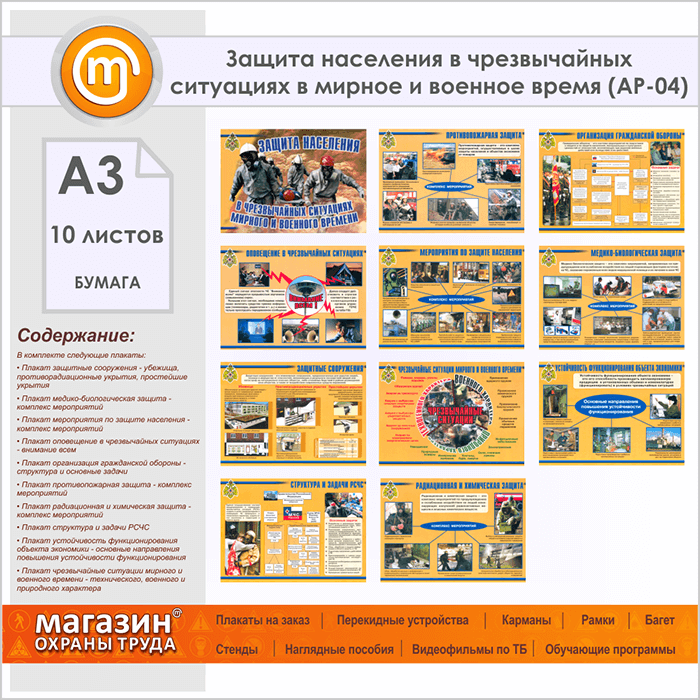 Плакаты «Защита населения в чрезвычайных ситуациях в мирное и военное время» (АР-04, бумага, А3, 10 листов) в Ижевске купить