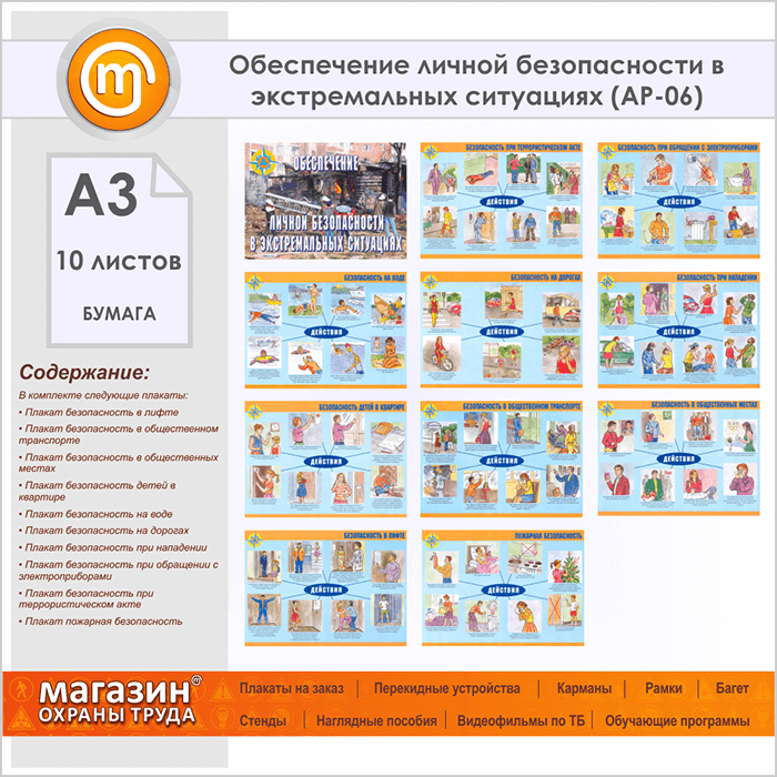 Плакаты «Обеспечение личной безопасности в экстремальных ситуациях» (АР-06, бумага, А3, 10 листов) в Ижевске купить