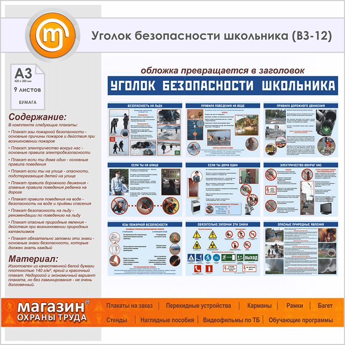 Плакаты «Уголок безопасности школьника» (ВЗ-12, бумага, А3, 10 листов) в Ижевске купить
