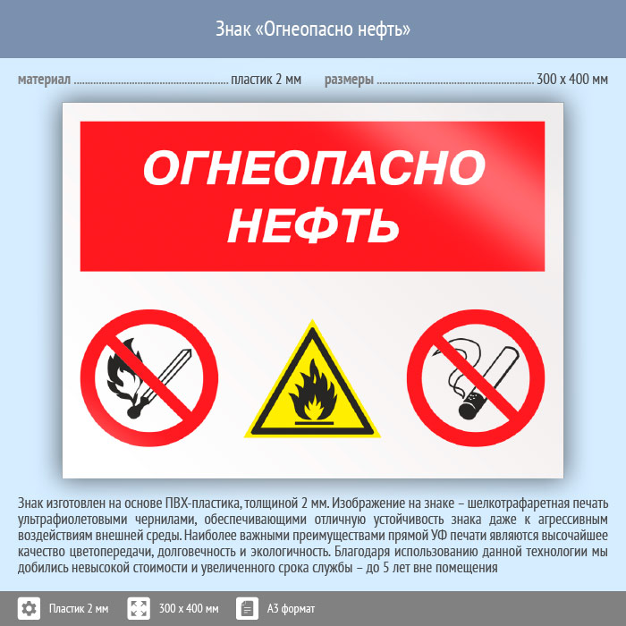 Знак «Огнеопасно нефть», КЗ-31 (пластик, 400х300 мм) в Ижевске купить