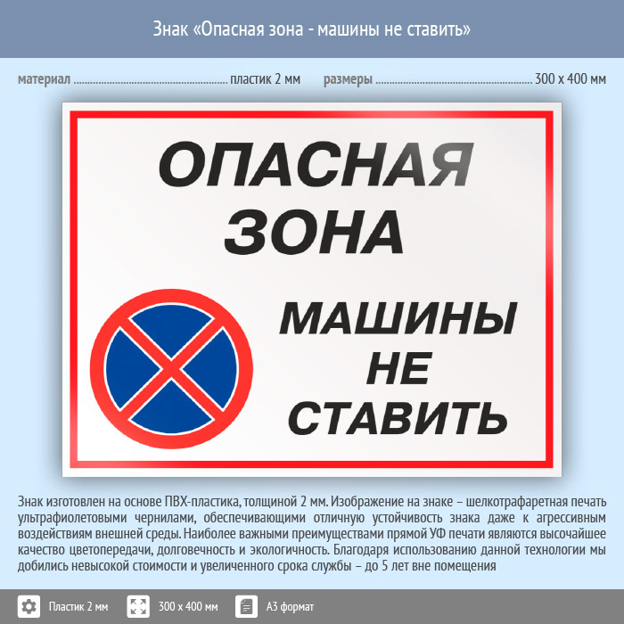 Знак «Опасная зона - машины не ставить», КЗ-32 (пластик, 400х300 мм) в Ижевске купить