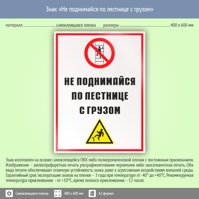 Знак «Не поднимайся по лестнице с грузом», КЗ-28 (пленка, 400х600 мм) в Ижевске купить