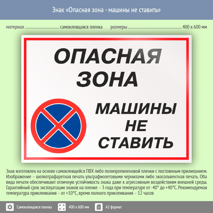 Знак «Опасная зона - машины не ставить», КЗ-32 (пленка, 600х400 мм) в Ижевске купить