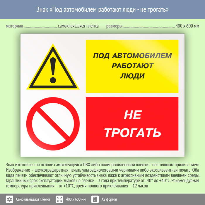 Знак «Под автомобилем работают люди - не трогать», КЗ-66 (пленка, 600х400 мм) в Ижевске купить