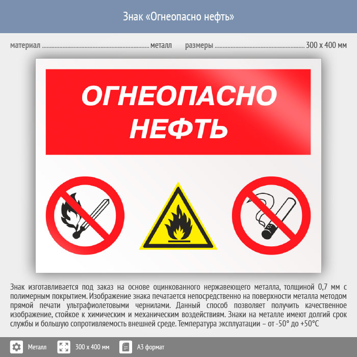 Знак «Огнеопасно нефть», КЗ-31 (металл, 400х300 мм) в Ижевске купить