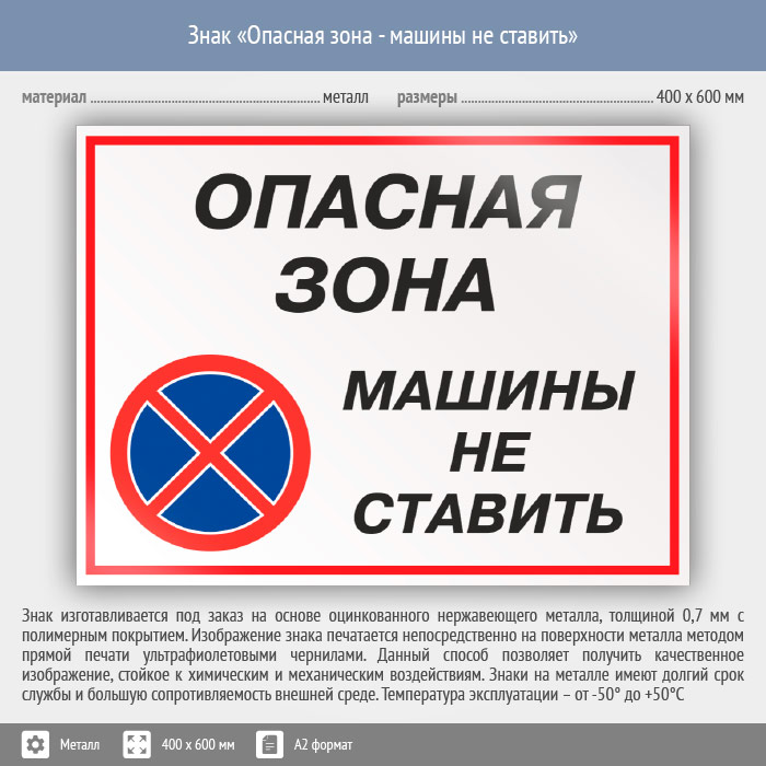 Знак «Опасная зона - машины не ставить», КЗ-32 (металл, 600х400 мм) в Ижевске купить