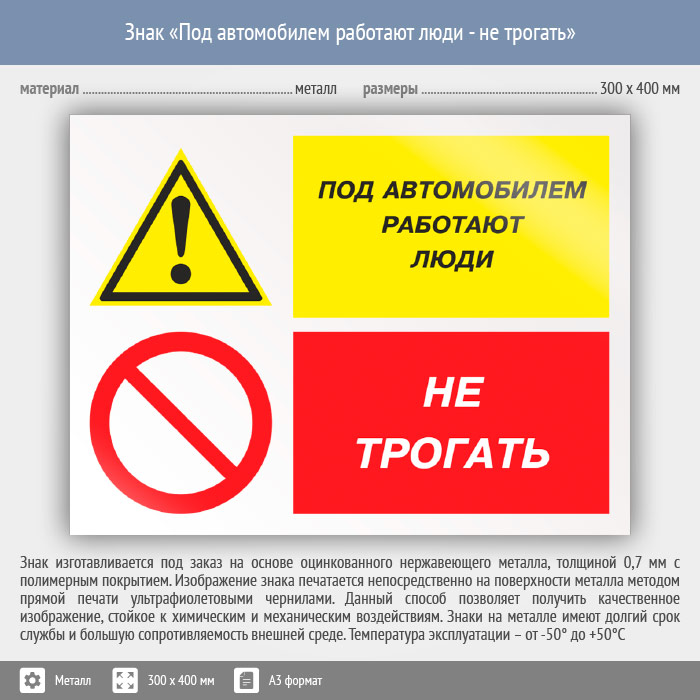 Знак «Под автомобилем работают люди - не трогать», КЗ-66 (металл, 400х300 мм) в Ижевске купить