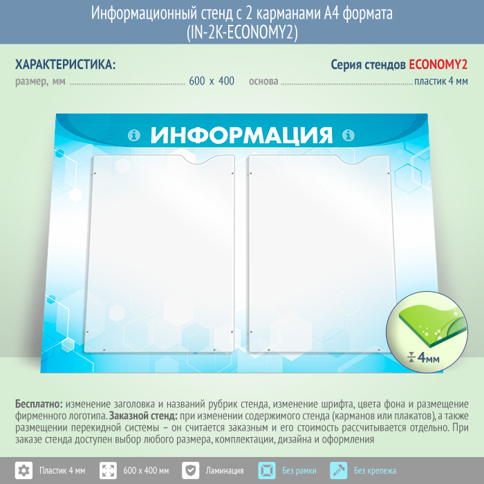 Информационный стенд с 2 карманами А4 формата (IN-2K-ECONOMY2) в Ижевске купить