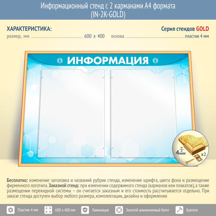 Информационный стенд с 2 карманами А4 формата (IN-2K-GOLD) в Ижевске купить