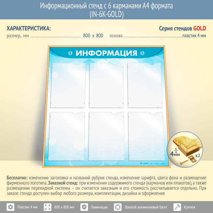 Информационный стенд с 6 карманами А4 формата (IN-6K-GOLD) в Ижевске купить