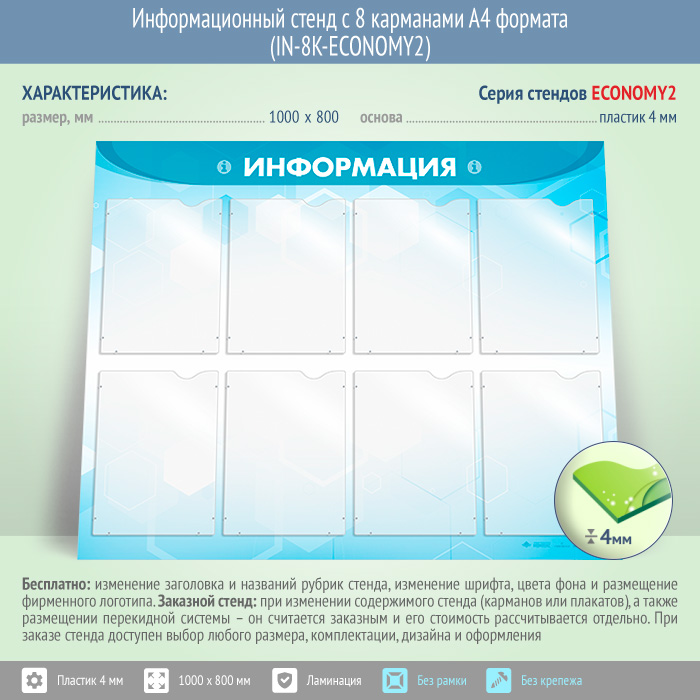 Информационный стенд с 8 карманами А4 формата (IN-8K-ECONOMY2) в Ижевске купить