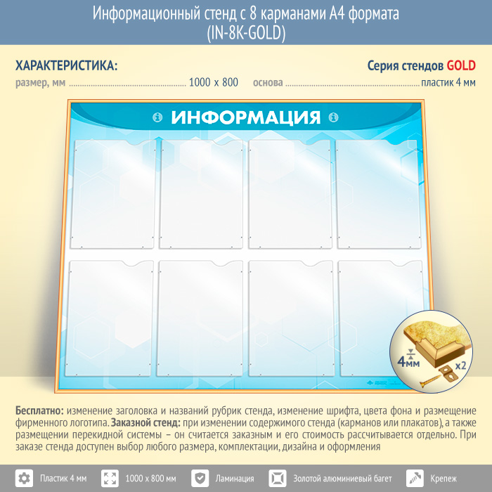 Информационный стенд с 8 карманами А4 формата (IN-8K-GOLD) в Ижевске купить