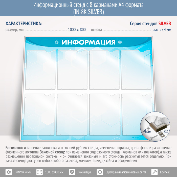Информационный стенд с 8 карманами А4 формата (IN-8K-SILVER) в Ижевске купить