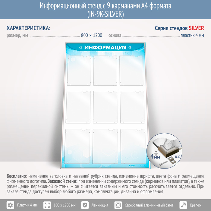 Информационный стенд с 9 карманами А4 формата (IN-9K-SILVER) в Ижевске купить