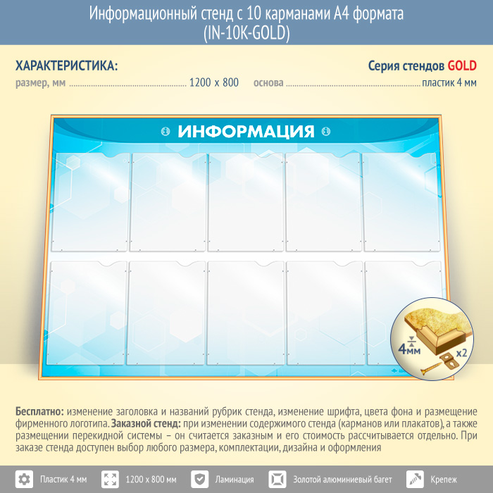 Информационный стенд с 10 карманами А4 формата (IN-10K-GOLD) в Ижевске купить
