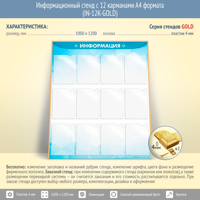 Информационный стенд с 12 карманами А4 формата (IN-12K-GOLD) в Ижевске купить