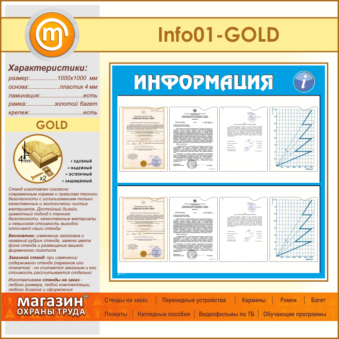 Стенд «Информация» с 8 карманами А4 формата (IN-01-GOLD) в Ижевске купить