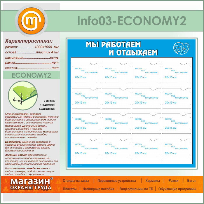 Стенд «Мы работаем и отдыхаем» с 16 карманами А5 формата (IN-03-ECONOMY2) в Ижевске купить