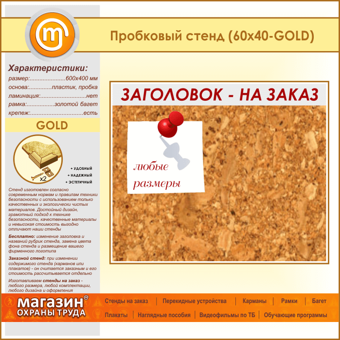 Пробковая доска с заголовком, 60х40 см (IN-06-GOLD) в Ижевске купить
