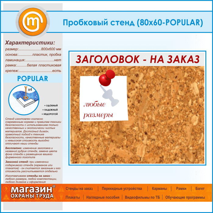 Пробковая доска с заголовком, 80х60 см (IN-06-POPULAR) в Ижевске купить