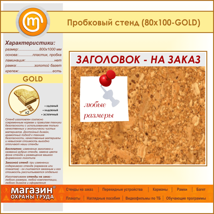 Пробковая доска с заголовком, 100х80 см (IN-06-GOLD) в Ижевске купить