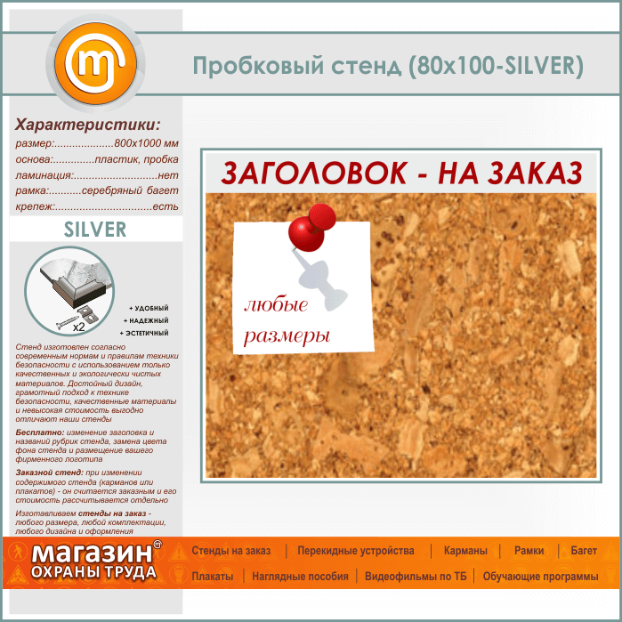 Пробковая доска с заголовком, 100х80 см (IN-06-SILVER) в Ижевске купить