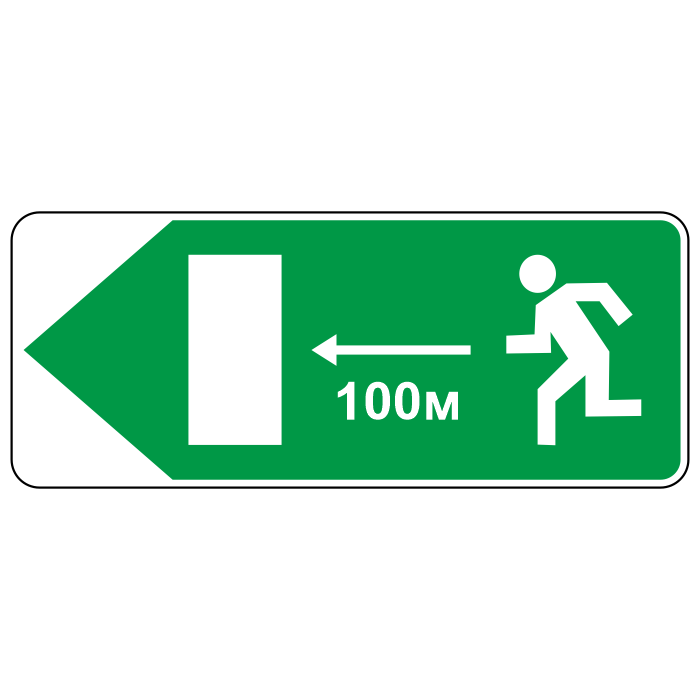 Дорожный знак 6.21.1 «Направление движения к аварийному выходу» (металл 0,8 мм, II типоразмер: 350х1050 мм, С/О пленка: тип В алмазная) в Ижевске купить