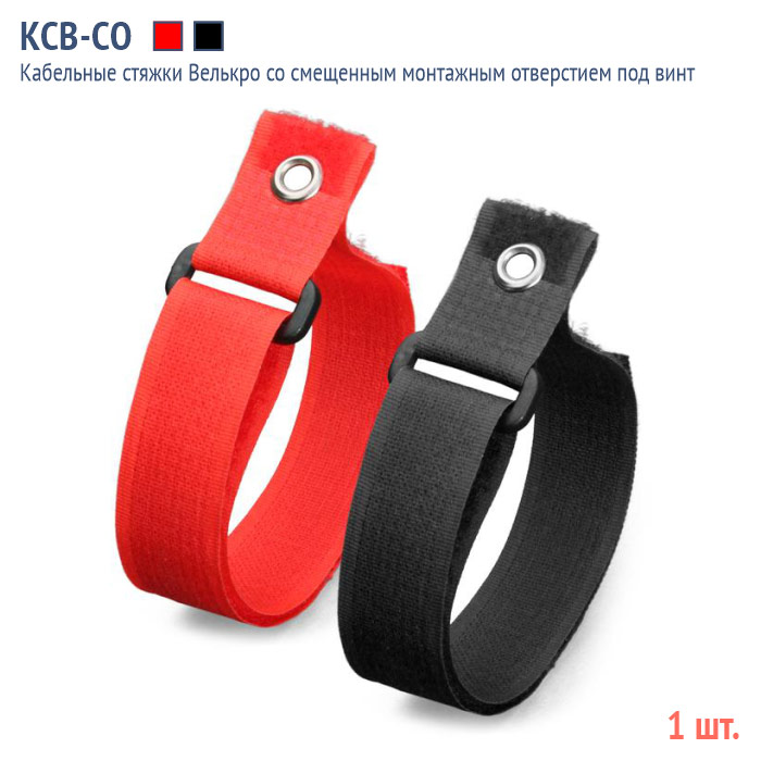 Кабельная стяжка Велькро со смещенным монтажным отверстием под винт - КСВ-СО 20х300 (ч) (1 шт.) в Ижевске купить