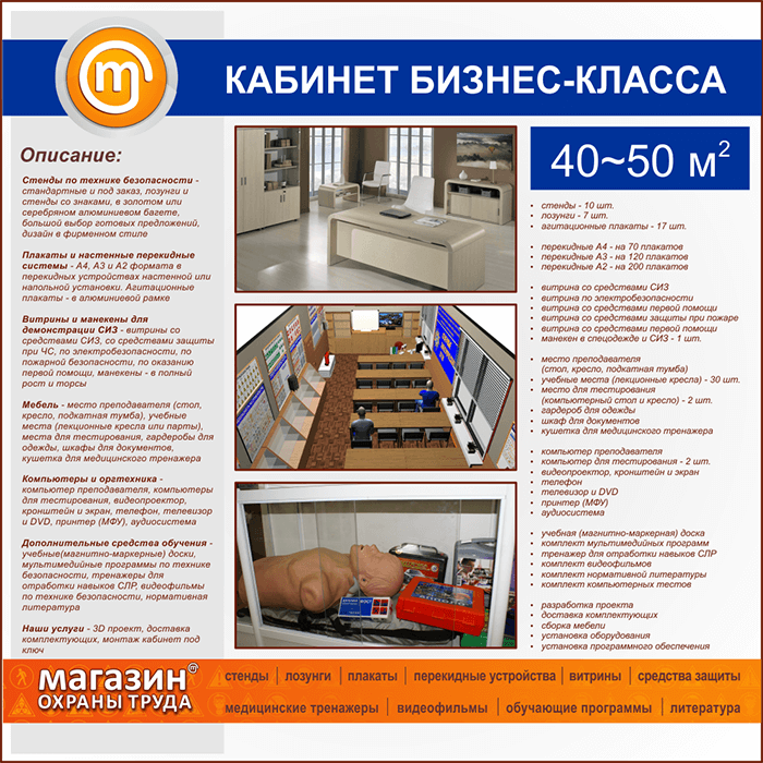 | Площадь кабинета: | 40-50 м2 |