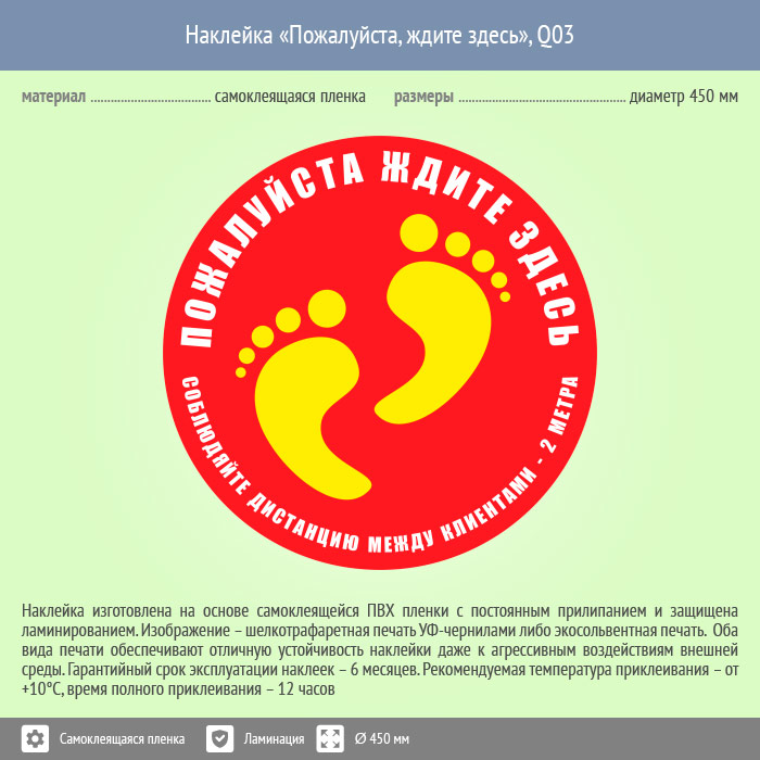 Наклейка на пол «Пожалуйста, ждите здесь», Q03 (пленка c ламинированием, диаметр 450 мм) в Ижевске купить