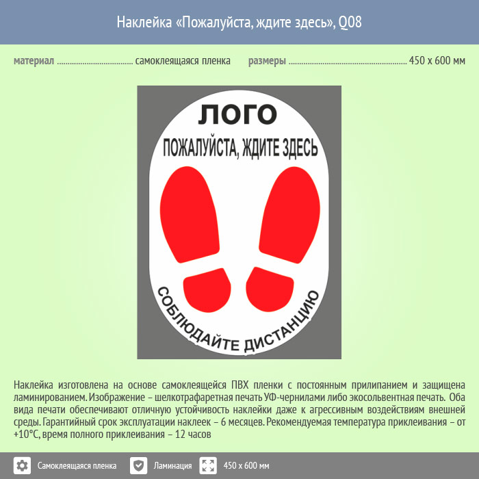 Наклейка на пол «Пожалуйста, ждите здесь», Q08 (пленка c ламинированием, 450х600 мм) в Ижевске купить