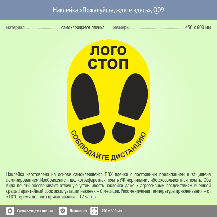 Наклейка на пол «Пожалуйста, ждите здесь», Q09 (пленка c ламинированием, 450х600 мм) в Ижевске купить