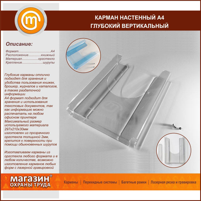 Карман настенный А4 объемный вертикальный в Ижевске купить