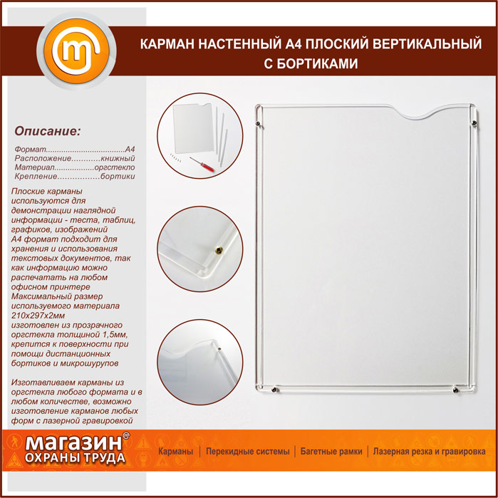 Карман настенный А4 плоский вертикальный с бортиками в Ижевске купить