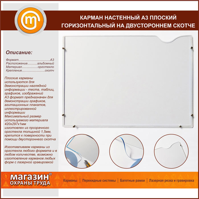 Карман настенный А3 плоский горизонтальный на двустороннем скотче в Ижевске купить