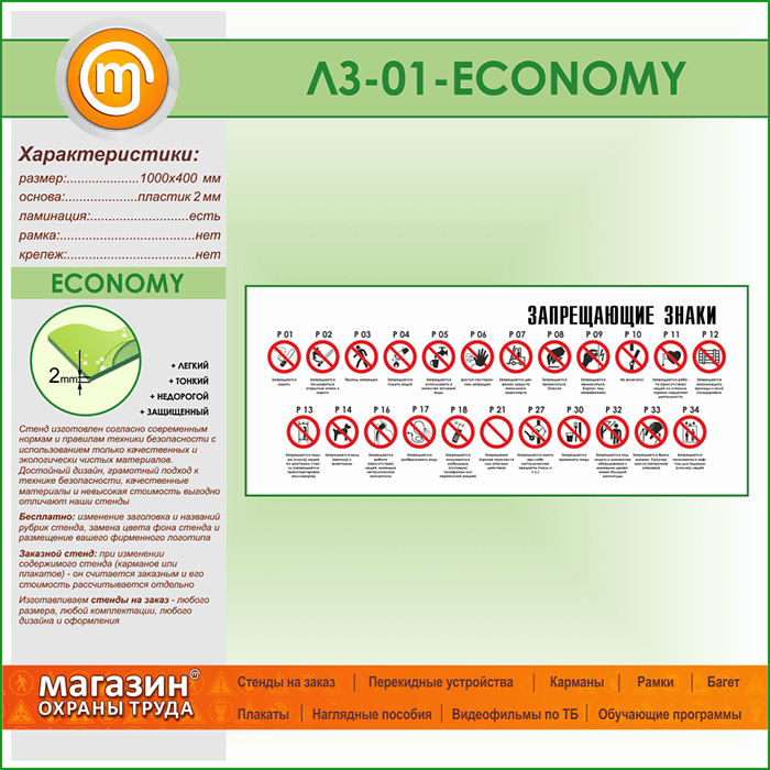 Стенд «Запрещающие знаки» (LZ-01-ECONOMY) в Ижевске купить