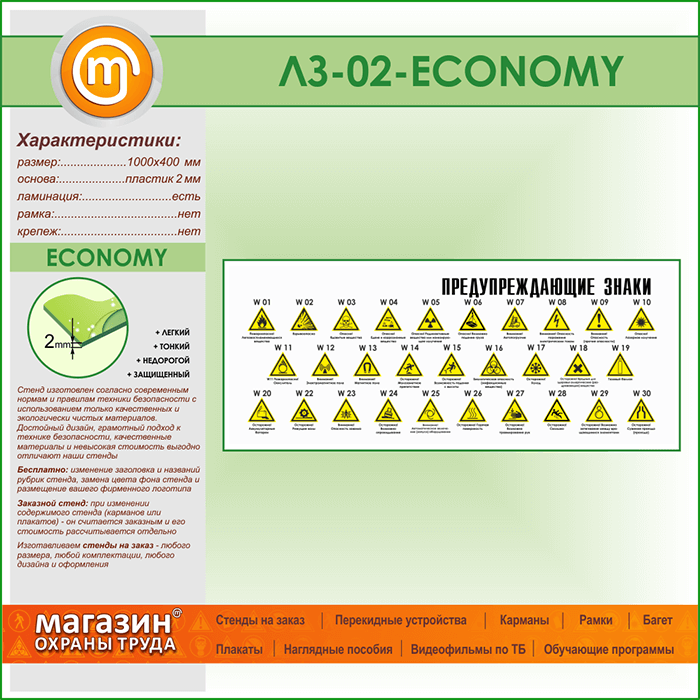 Стенд «Предупреждающие знаки» (LZ-02-ECONOMY) в Ижевске купить