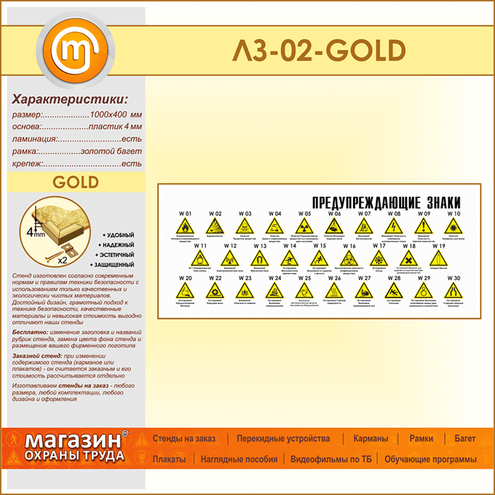 Стенд «Предупреждающие знаки» (LZ-02-GOLD) в Ижевске купить