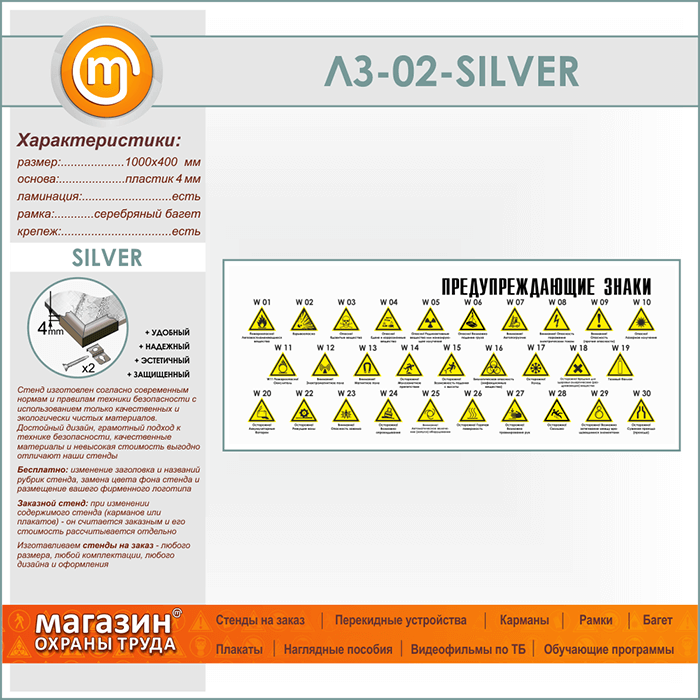 Стенд «Предупреждающие знаки» (LZ-02-SILVER) в Ижевске купить