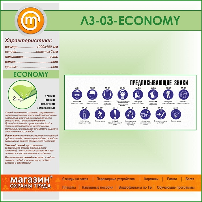 Стенд «Предписывающие знаки» (LZ-03-ECONOMY) в Ижевске купить