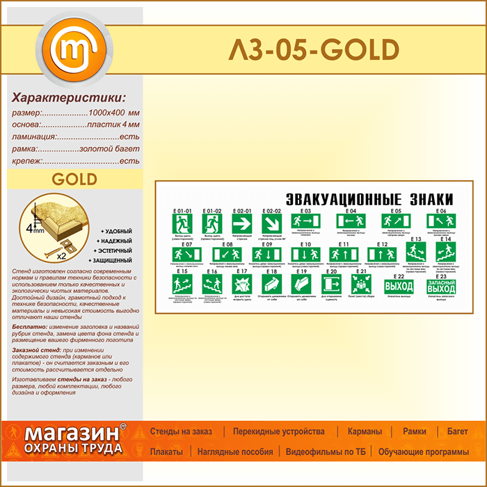 Стенд «Эвакуационные знаки» (LZ-05-GOLD) в Ижевске купить