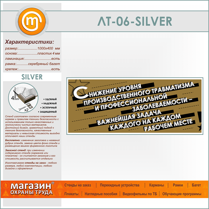 Лозунг «Снижение уровня производственного травматизма...» (LT-06-SILVER) в Ижевске купить