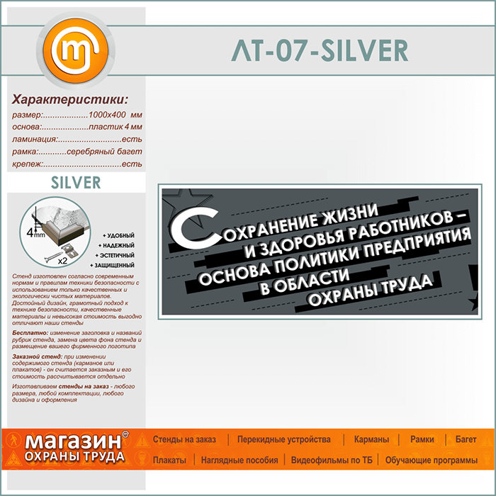 Лозунг «Сохранение жизни и здоровья работников...» (LT-07-SILVER) в Ижевске купить